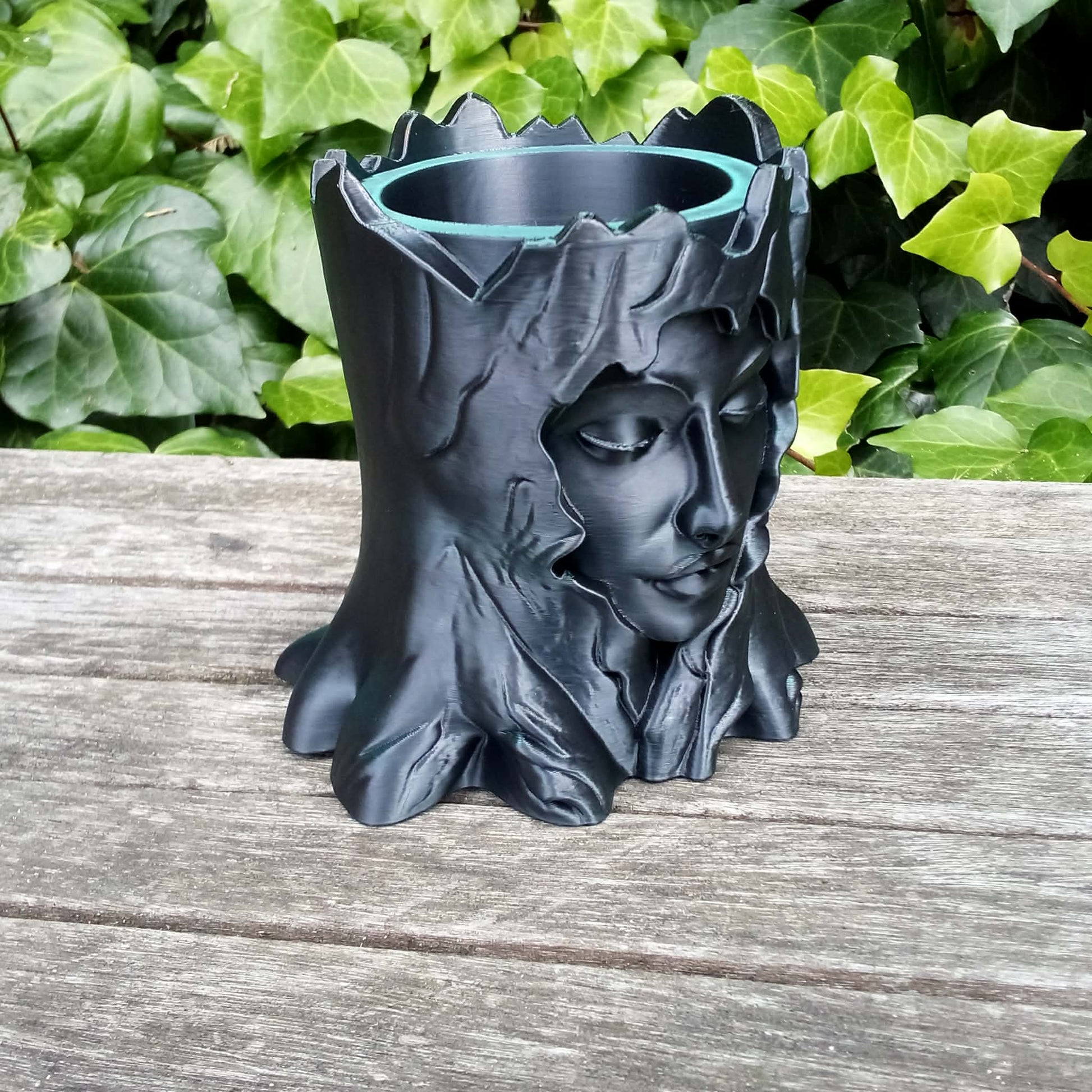 Elevate your greenery with Emerging Beauty, a masterpiece of modern 3D sculpture. This stunning plant pot features a woman's face blossoming from a tree trunk. It's a symbol of personal growth, feminine power and our bond with nature.