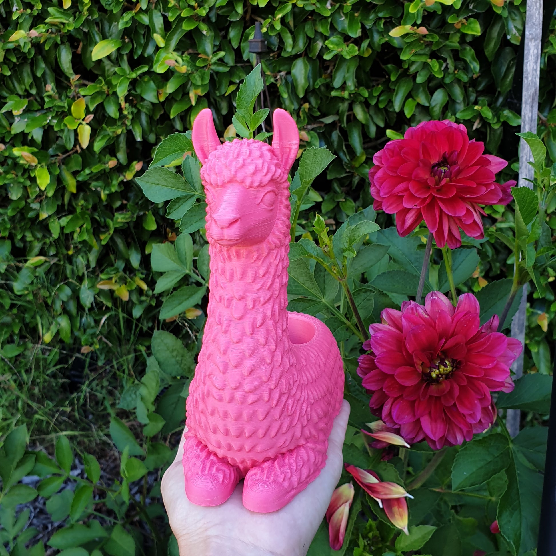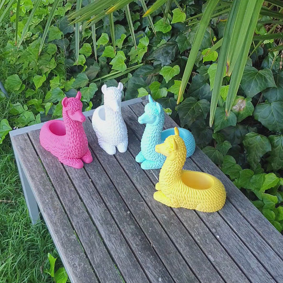 Each llama features a beautifully detailed "fur" texture and a hollow back perfectly sized for small succulents, cacti, or air plants. They are available in a variety of vibrant colors to match your style.
